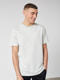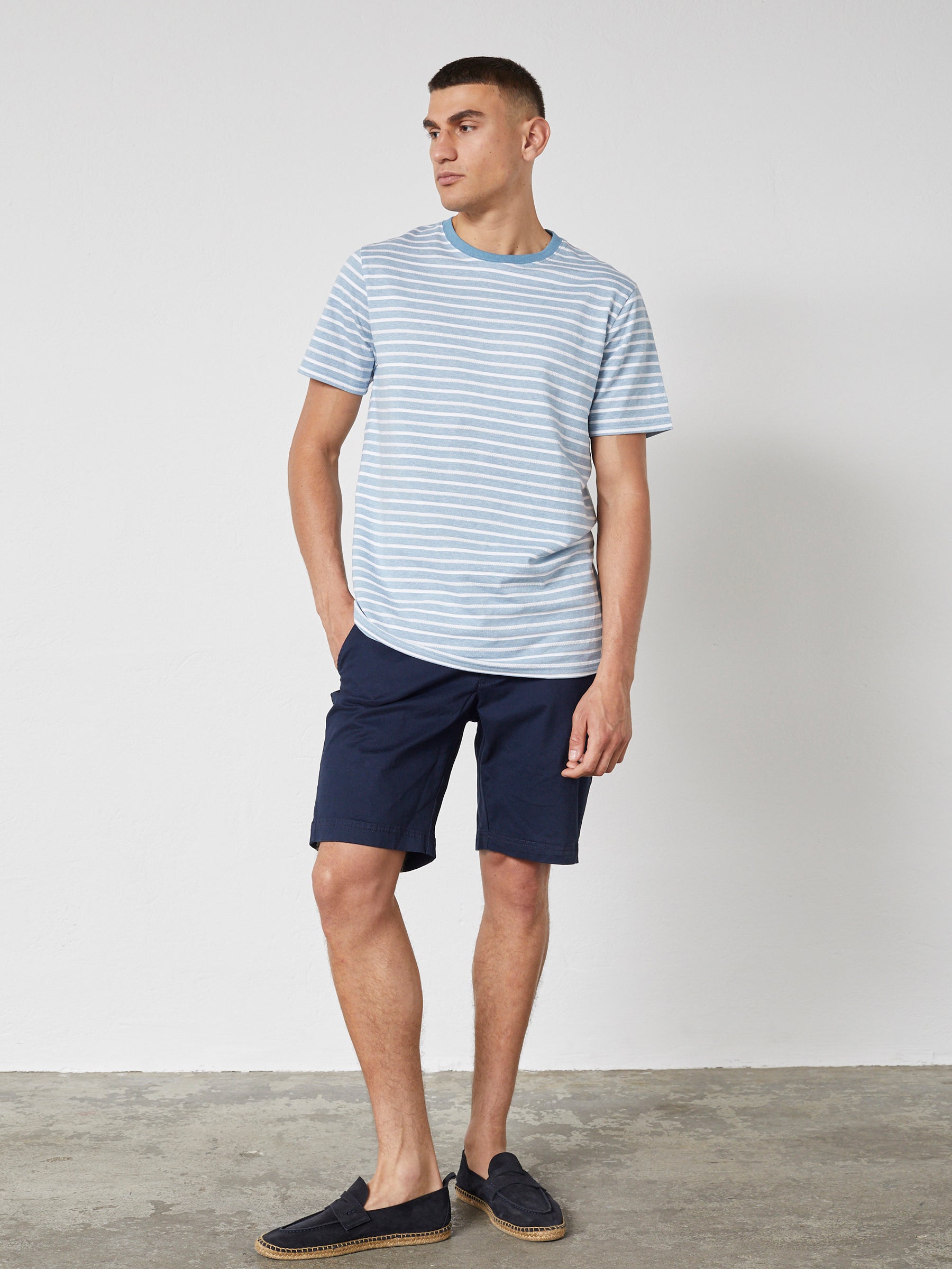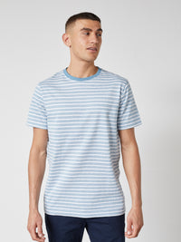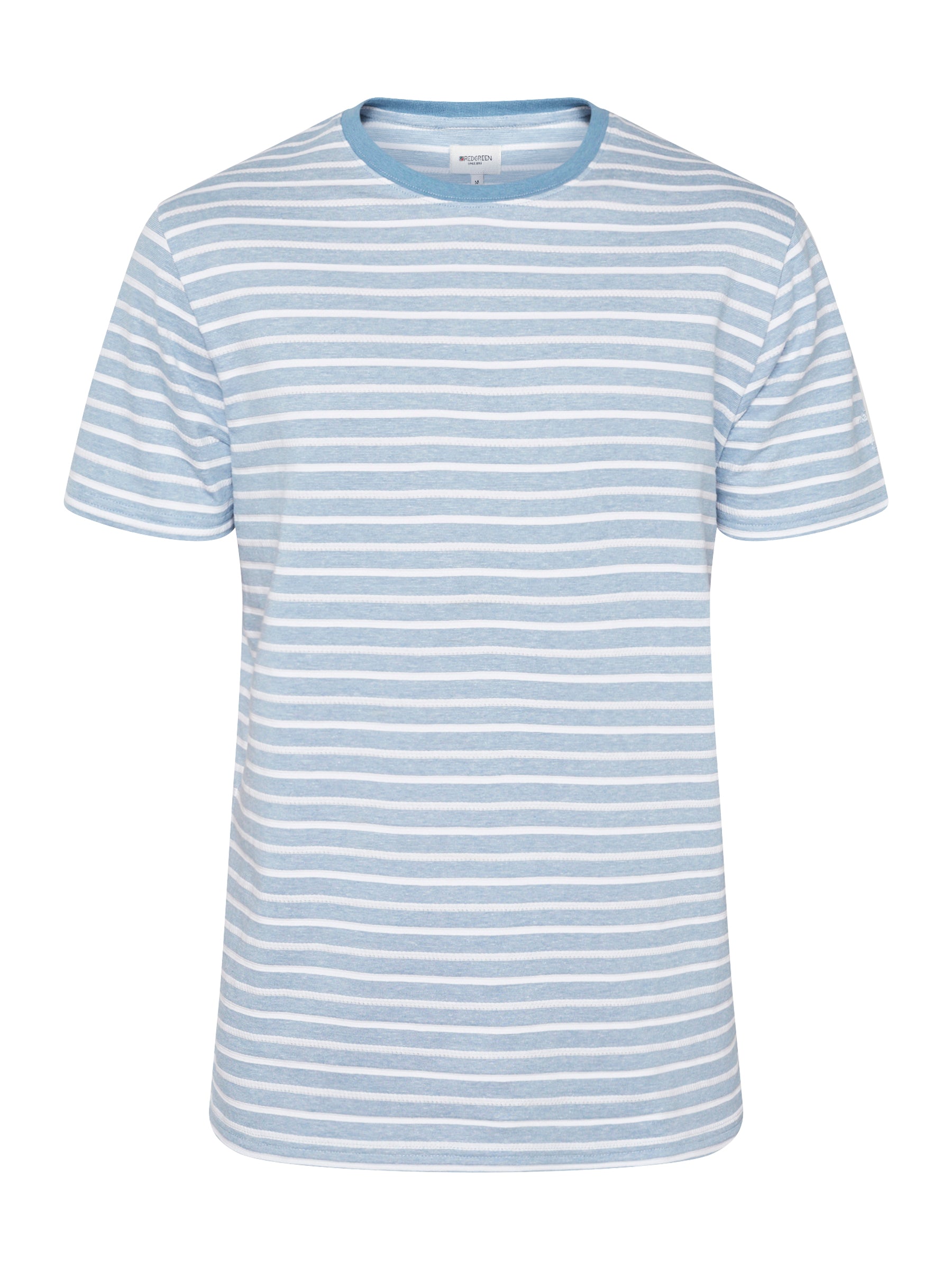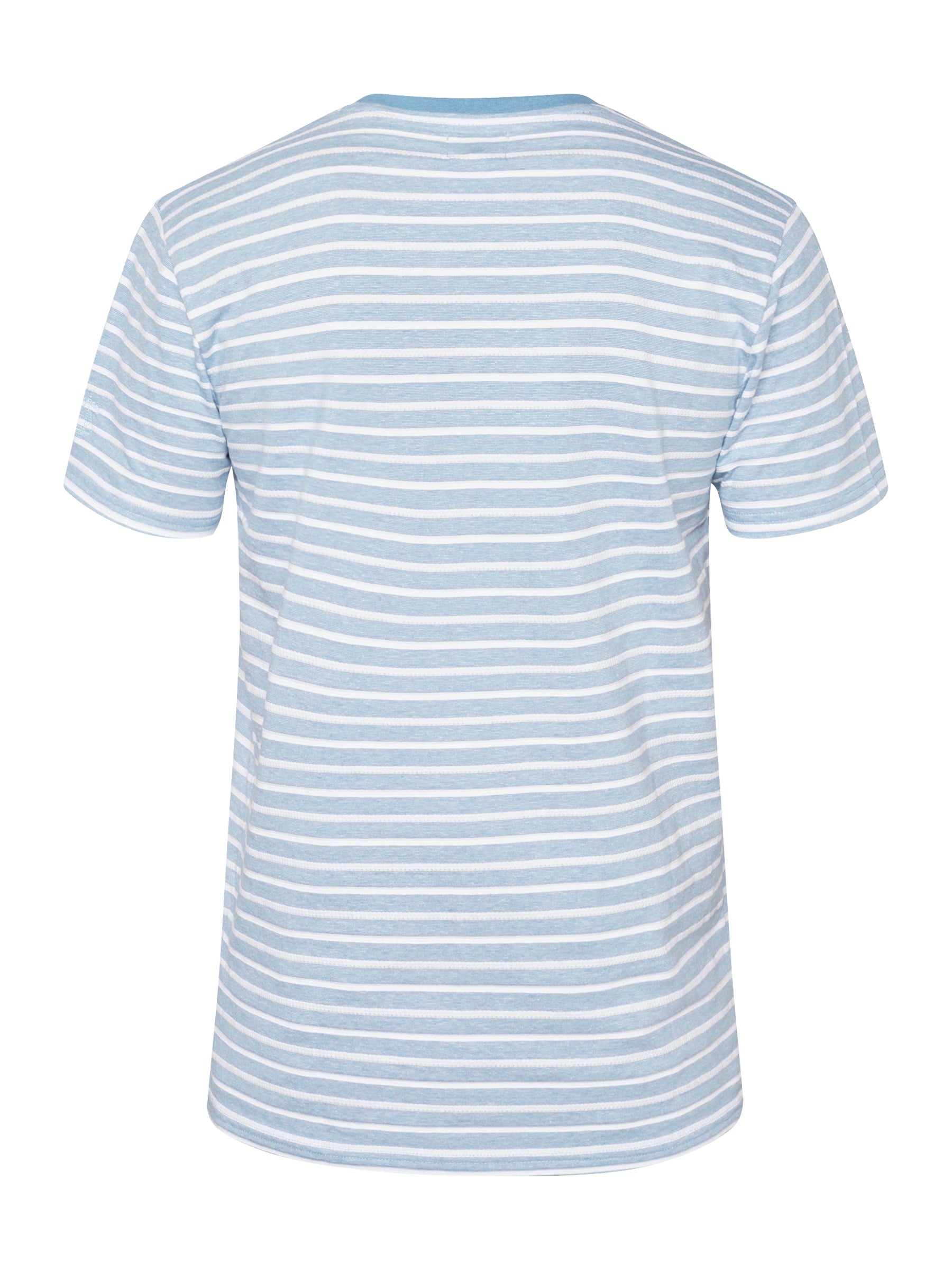 Afslappet herre-T-shirt i blød bomuldsblanding med et klassisk, stribet udtryk. Den lette kvalitet og behagelige pasform gør T-shirten velegnet til hverdagsbrug og afslappede sommerlooks.