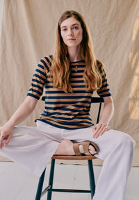 Hedy Short Sleeve T-shirt - Light Brown Stripe