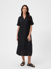 • Løft din garderobe med Dannie Kjole, en tidløs kombination af stil og komfort. Fremstillet af en eksklusiv blanding af hør og viskose, tilbyder den både holdbarhed og en behagelig pasform, perfekt til alt fra familieudflugter til afslappede møder.