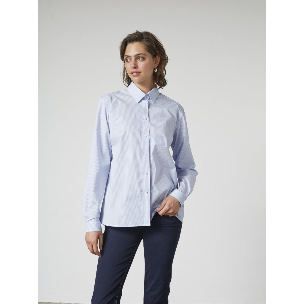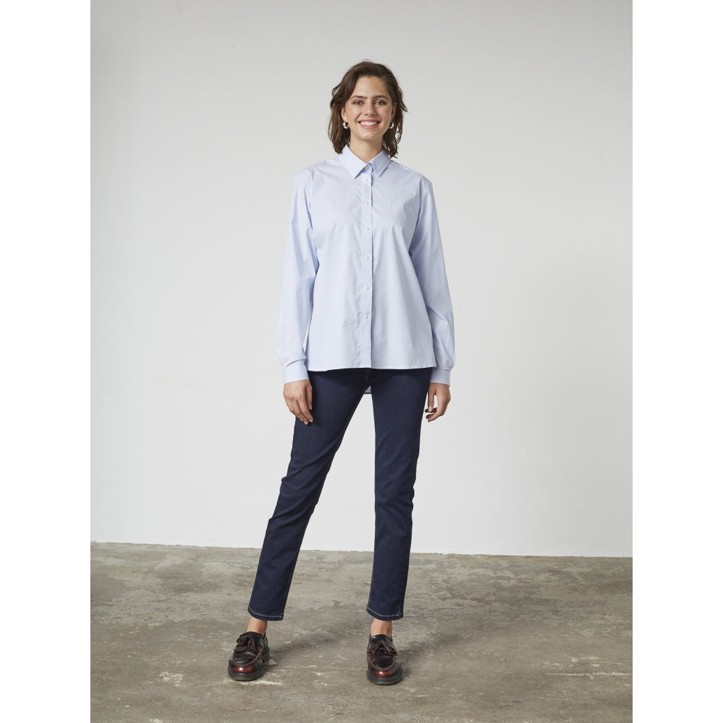 Oplev lethed og elegance med Anabelle Shirt, der kombinerer nordisk enkelhed med praktisk funktionalitet. Fremstillet af en førsteklasses bomuldsblanding med let stretch, sikrer skjorten både komfort og holdbarhed. Det tidløse design gør den alsidig og ideel til både hverdagsbrug og mere formelle anledninger.