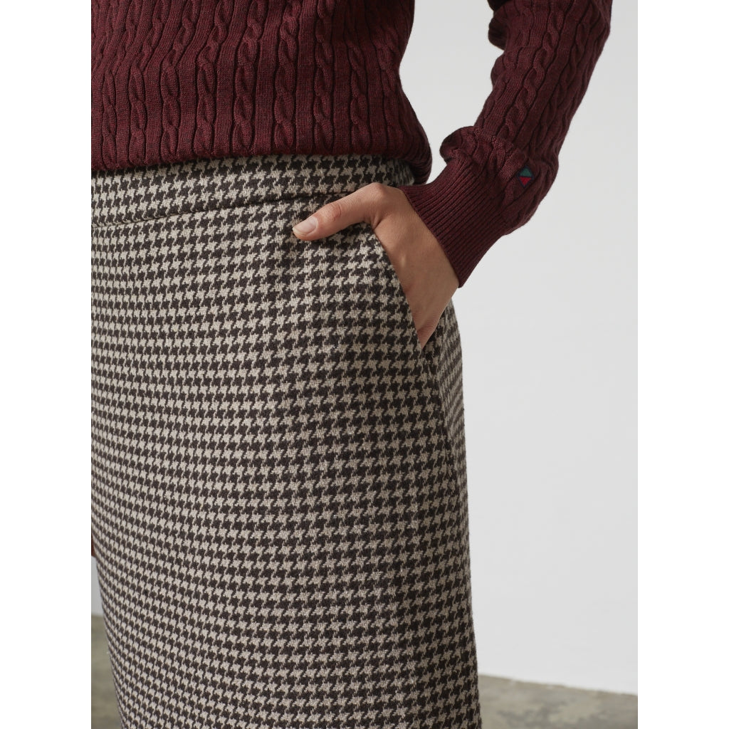 • Nadia nederdelen har et klassisk ternet mønster og en lige, enkel pasform. Den bløde uldblanding gør den behagelig til hverdagsbrug og nem at kombinere med både strik og skjorter.