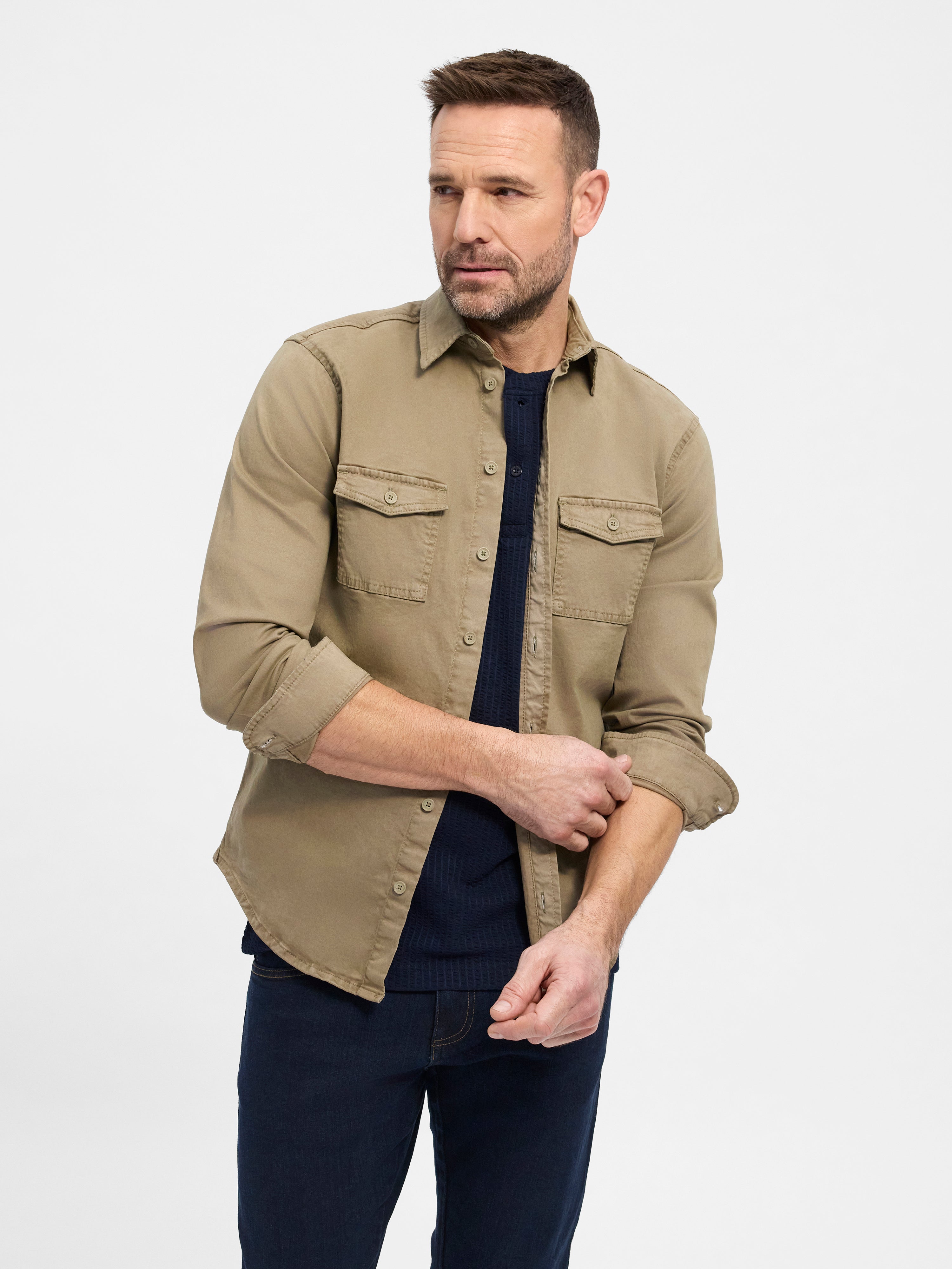 Langærmet skjorte med regular fit og let stretch. En komfortabel hverdagsskjorte i bomuldsblanding med lidt ekstra bevægelighed.