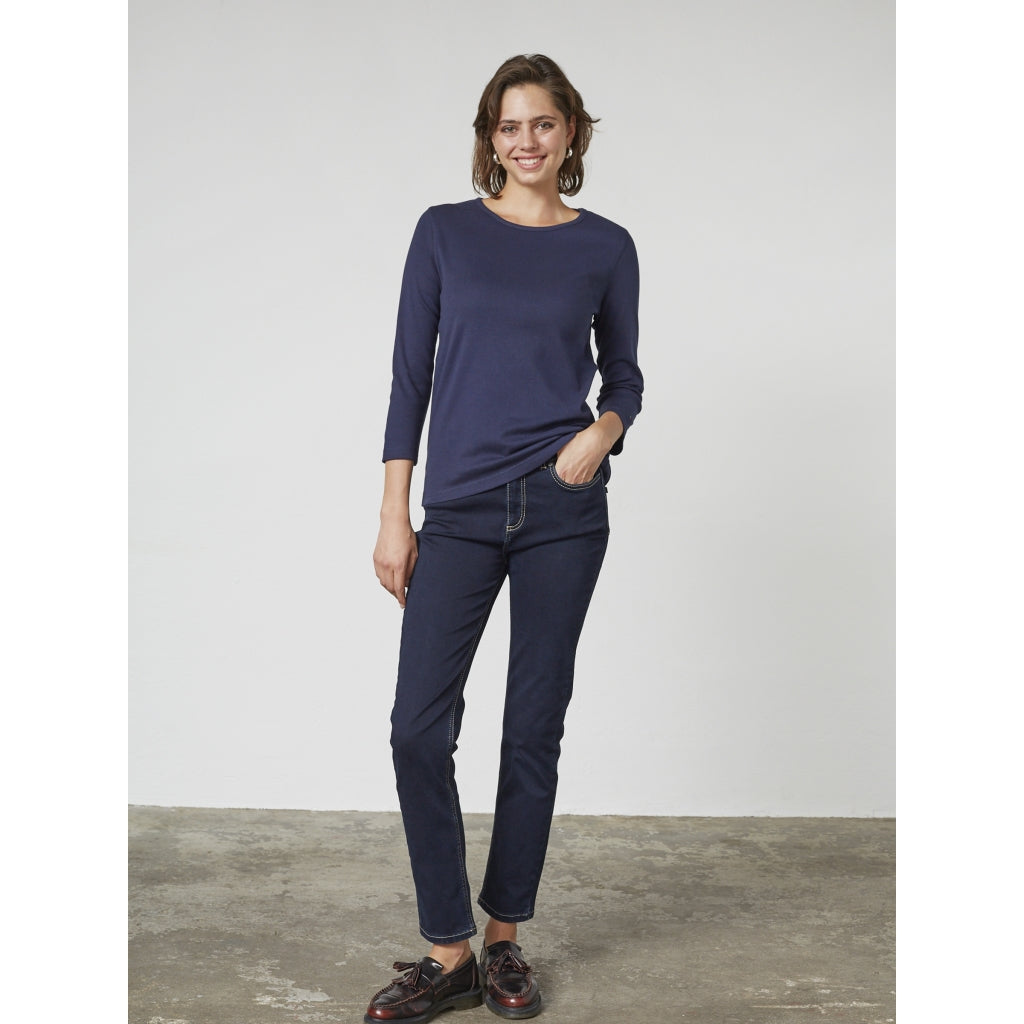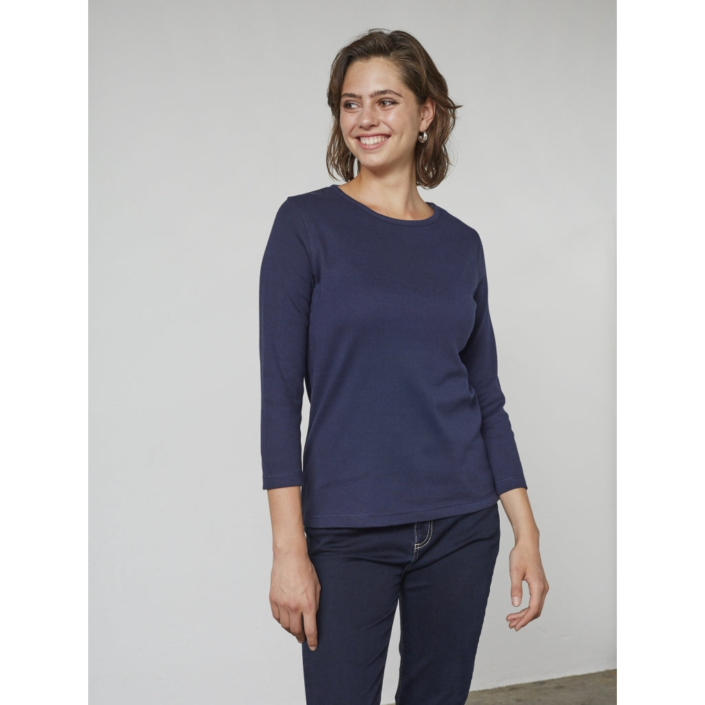 Oplev komfort og stil med Clarissa Long Sleeve Tee, en alsidig langærmet T-shirt i navy eller sky blue. Perfekt til både en afslappet dag på kontoret og weekendudflugter. Fremstillet af 100% bomuld for en blød og åndbar fornemmelse, der sikrer komfort hele dagen.