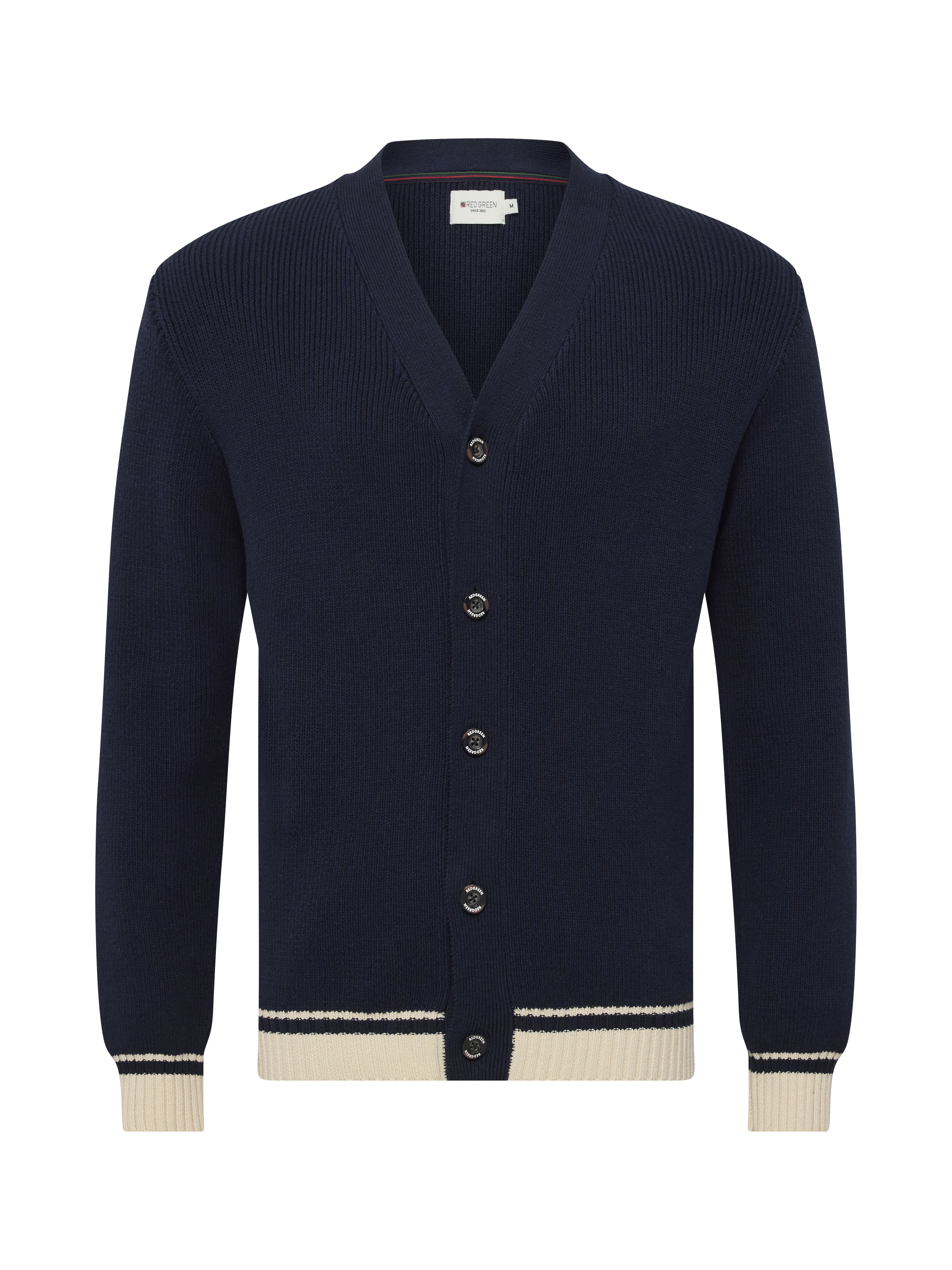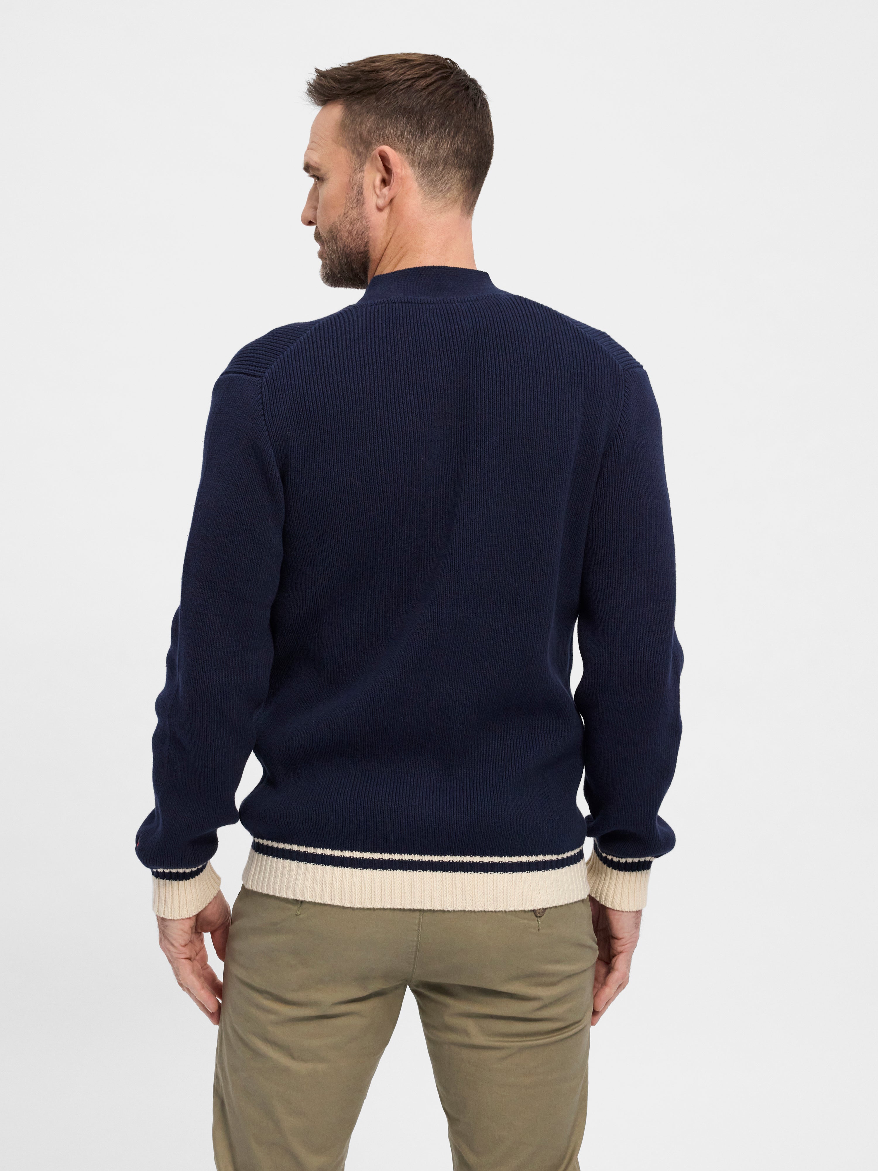 • Jason er en klassisk cardigan med v-hals og knaplukning. Lavet i 100% bomuld og afsluttet med kontrastdetaljer ved kant og manchet – et tidløst lag til hverdag og fritid.