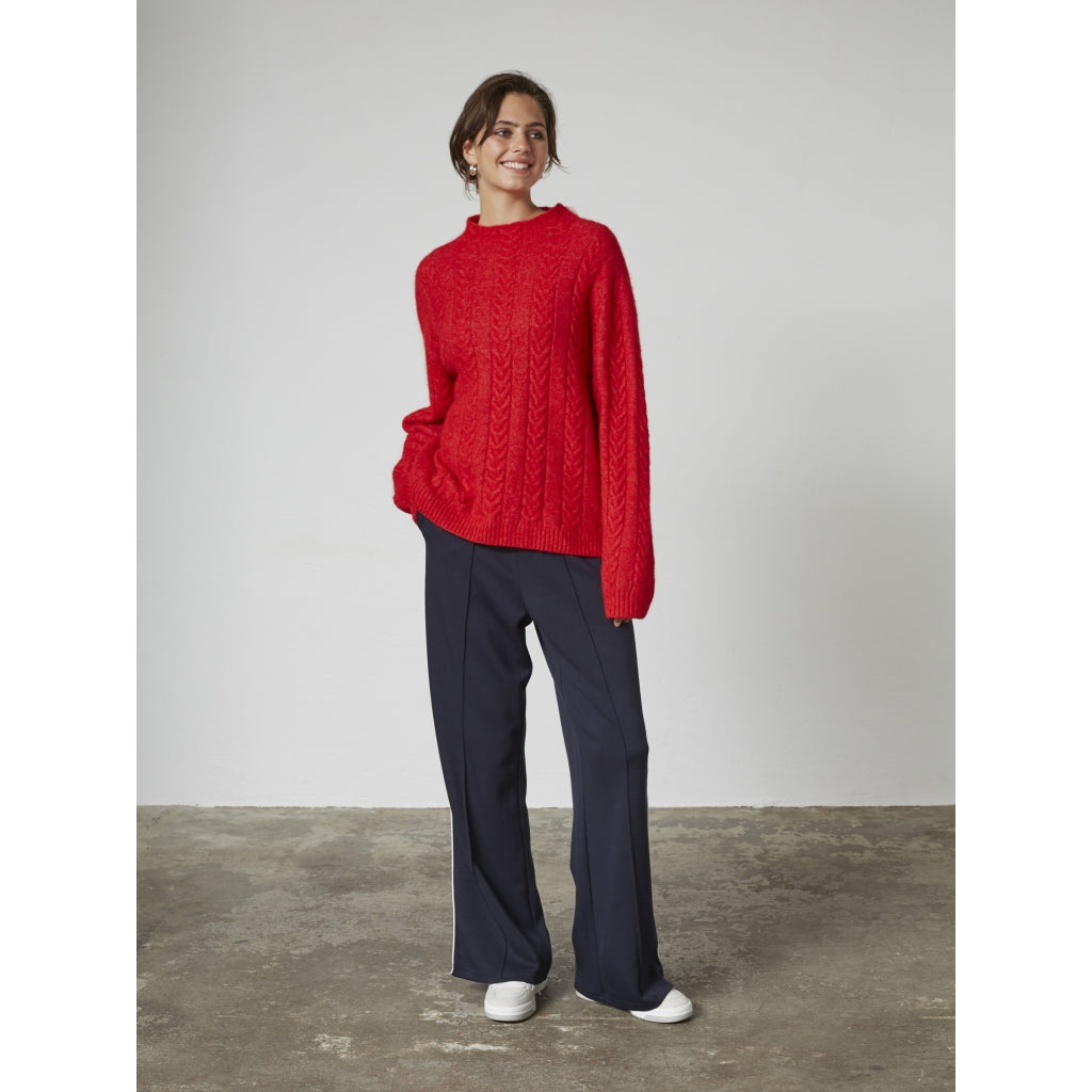 Katey er en blød kabelstrik med høj hals og klassisk struktur. Den varme alpaka- og merinoblanding gør den oplagt til kølige dage – behagelig og stilren på én gang.