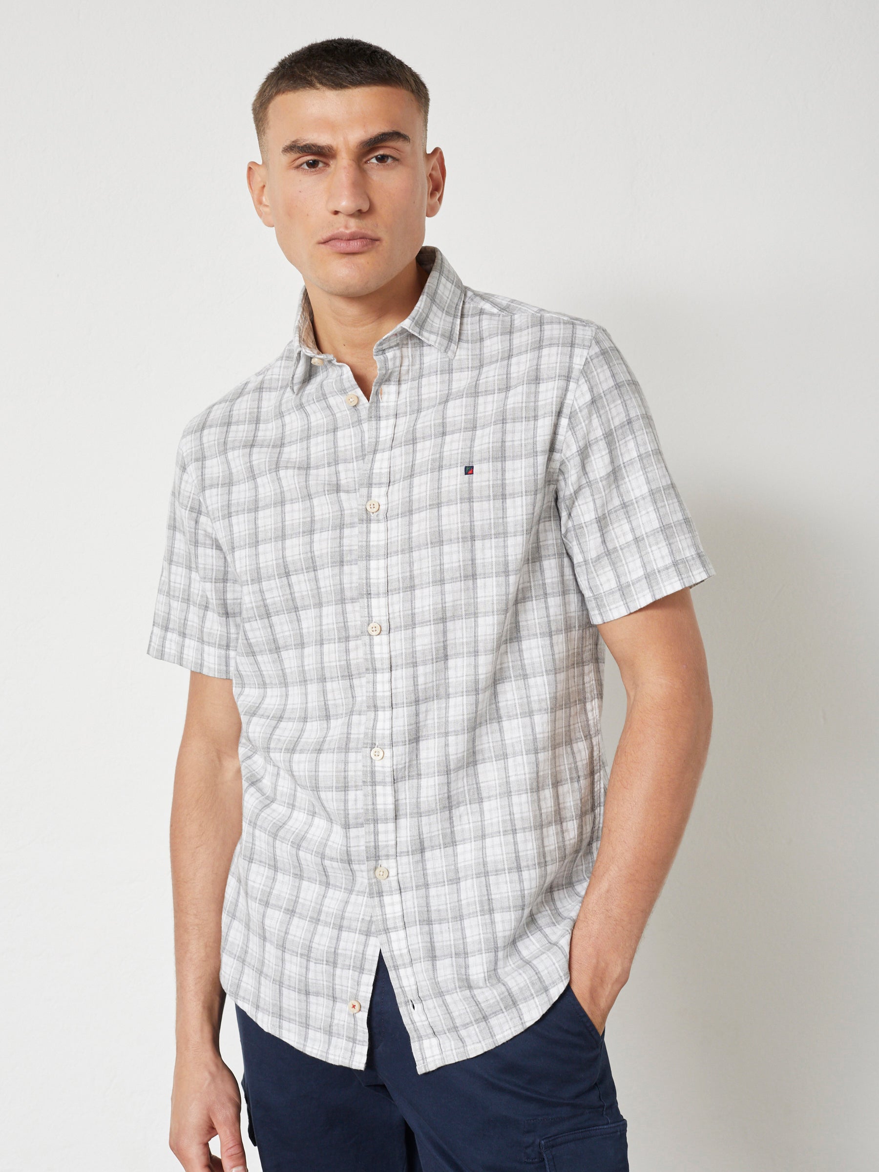 Let og sommerlig herreskjorte i bomulds- og hørblanding med et klassisk, ternet udtryk. En behagelig skjorte med kort ærme og god åndbarhed, velegnet til varme dage og afslappet hverdagsbrug.