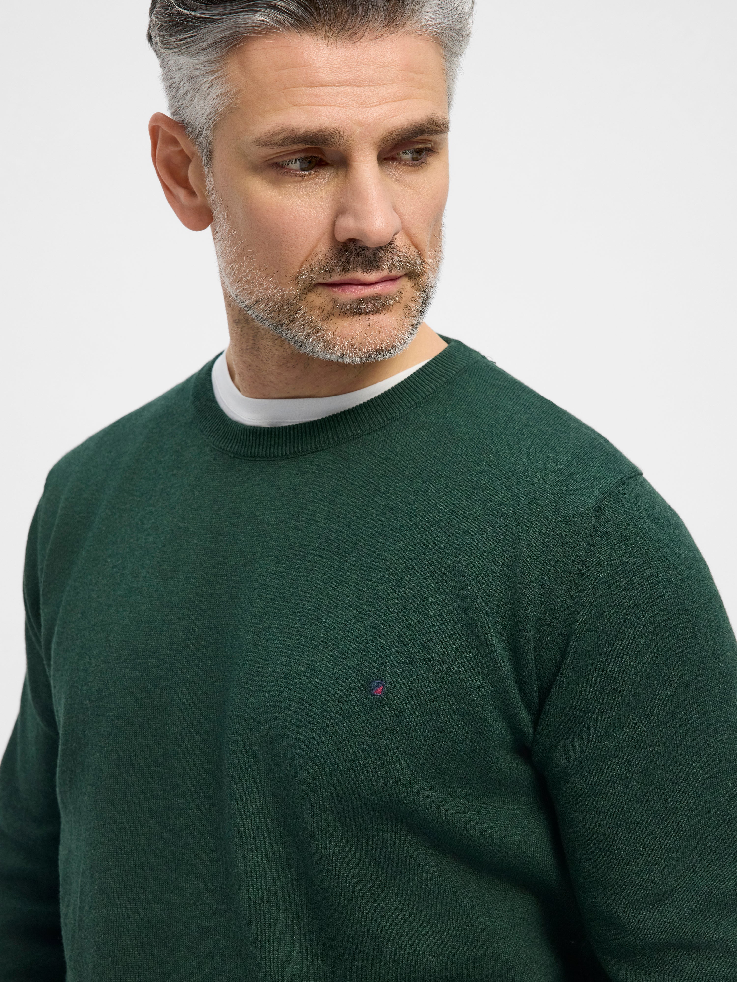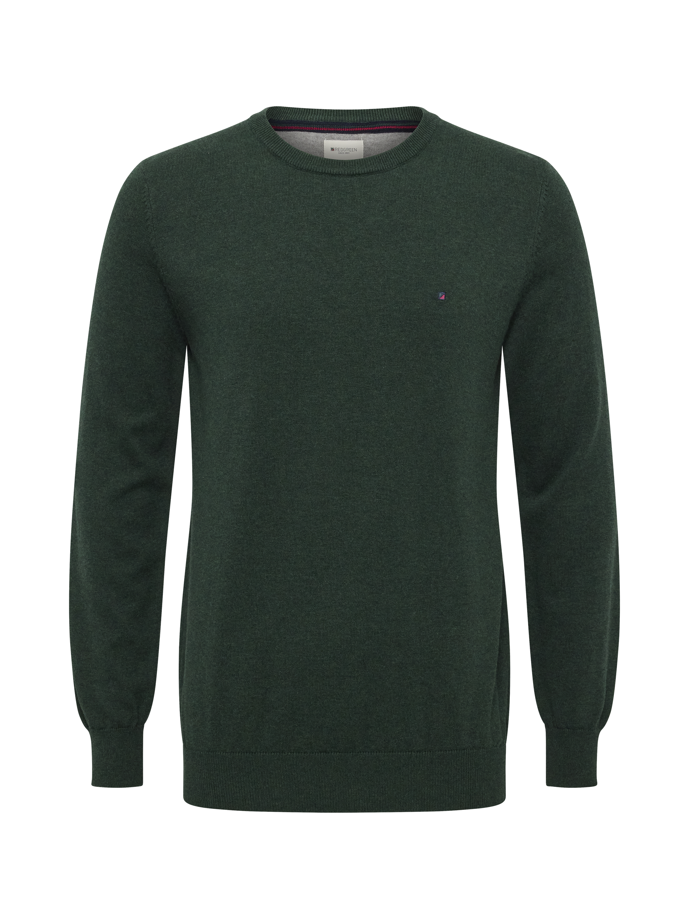Denne klassiske striktrøje i 100% bomuld kombinerer komfort og stil. Ribstrik ved ærmer og bund giver en behagelig pasform, mens det tidløse design gør den alsidig til både hverdag og pænere lejligheder. Perfekt til lag-på-lag under en jakke for ekstra varme.