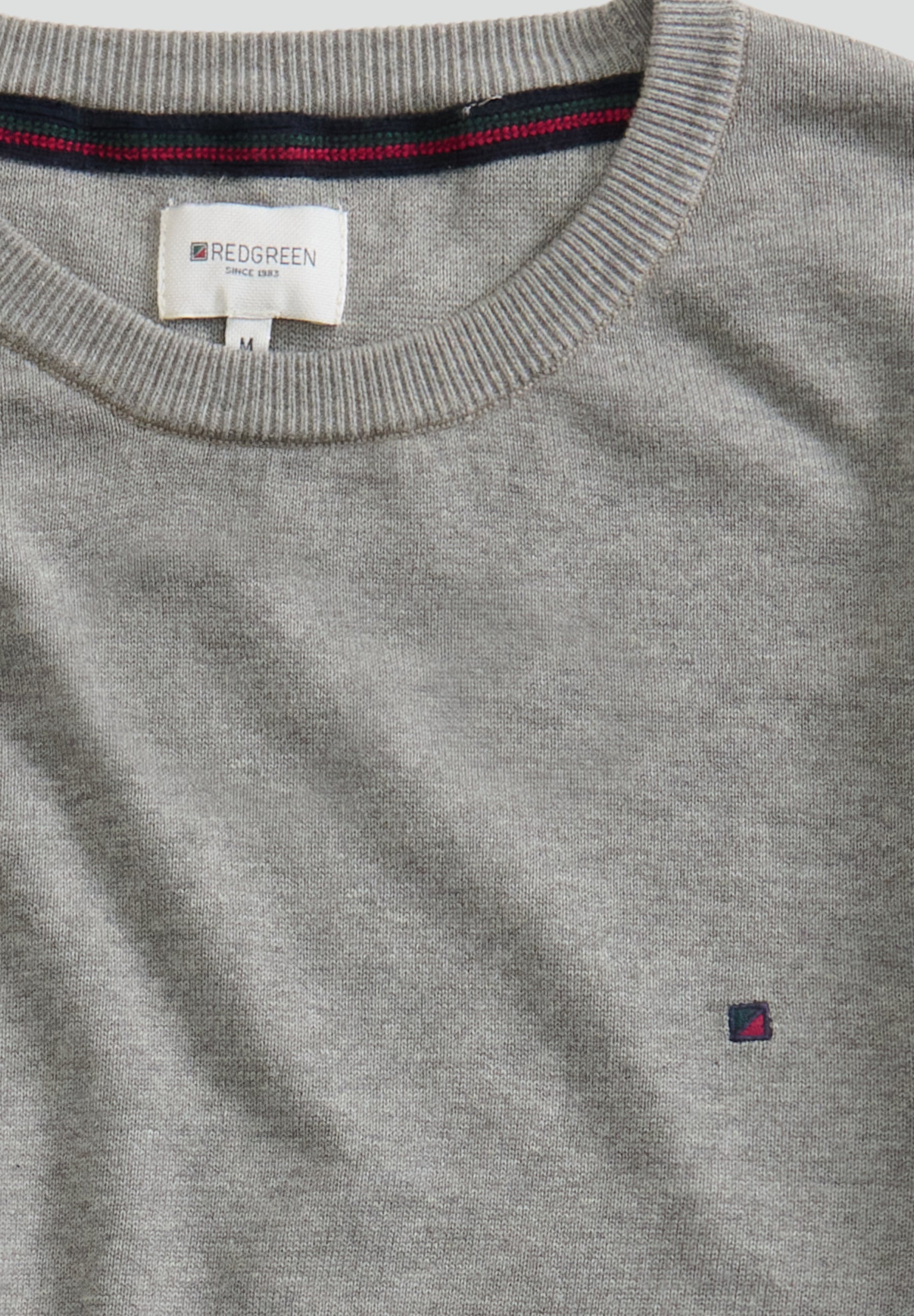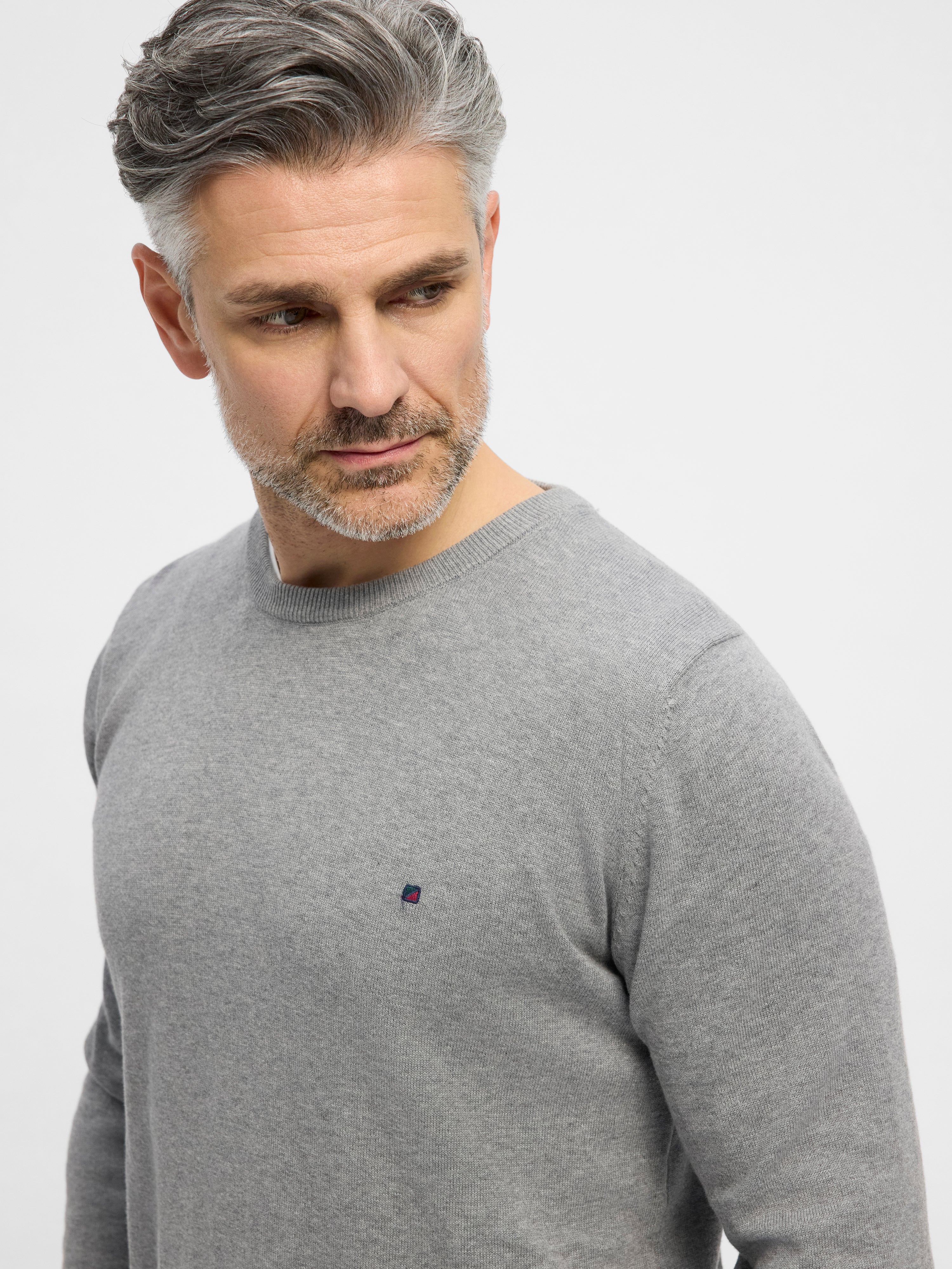 Denne klassiske striktrøje i 100% bomuld kombinerer komfort og stil. Ribstrik ved ærmer og bund giver en behagelig pasform, mens det tidløse design gør den alsidig til både hverdag og pænere lejligheder. Perfekt til lag-på-lag under en jakke for ekstra varme.