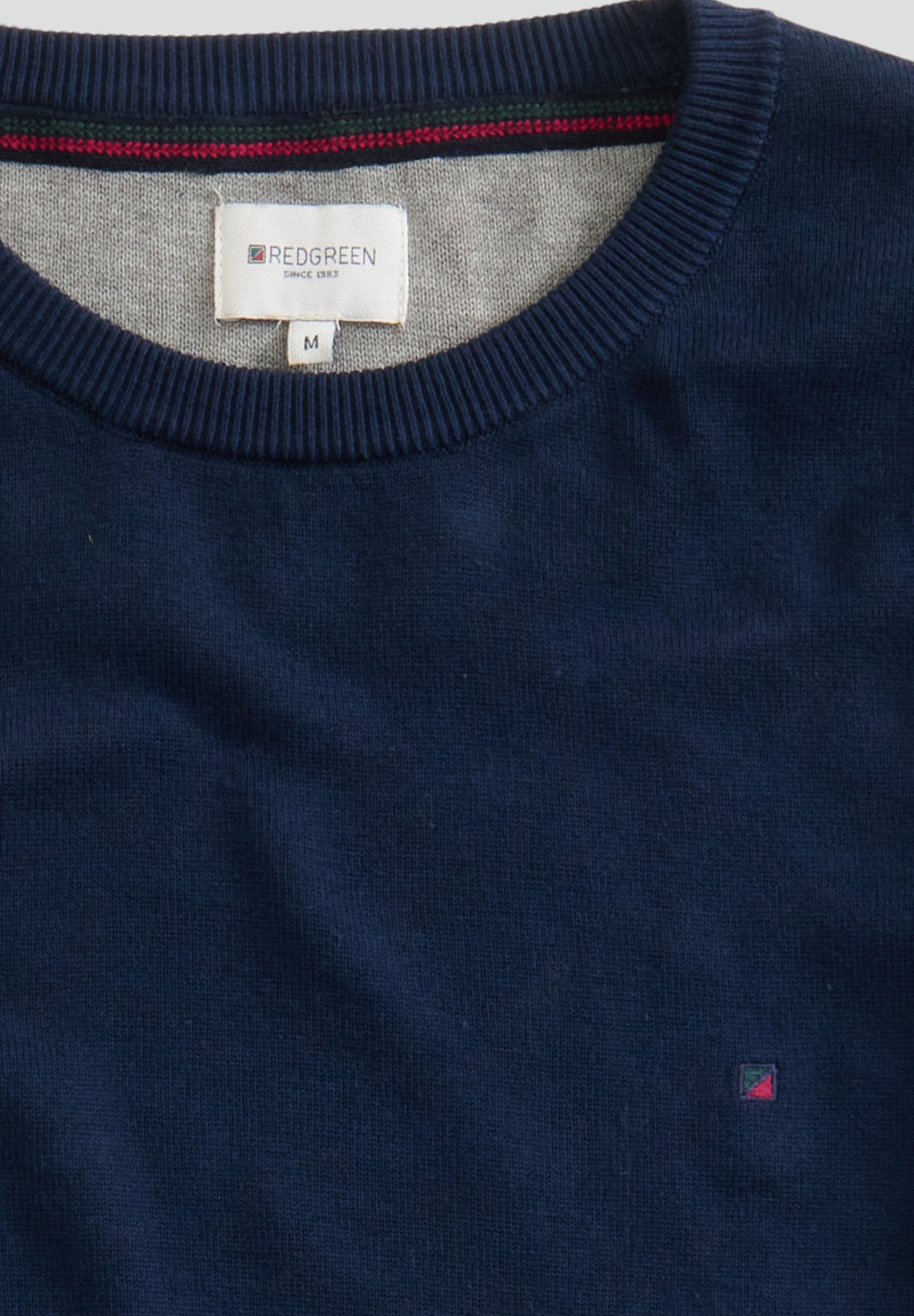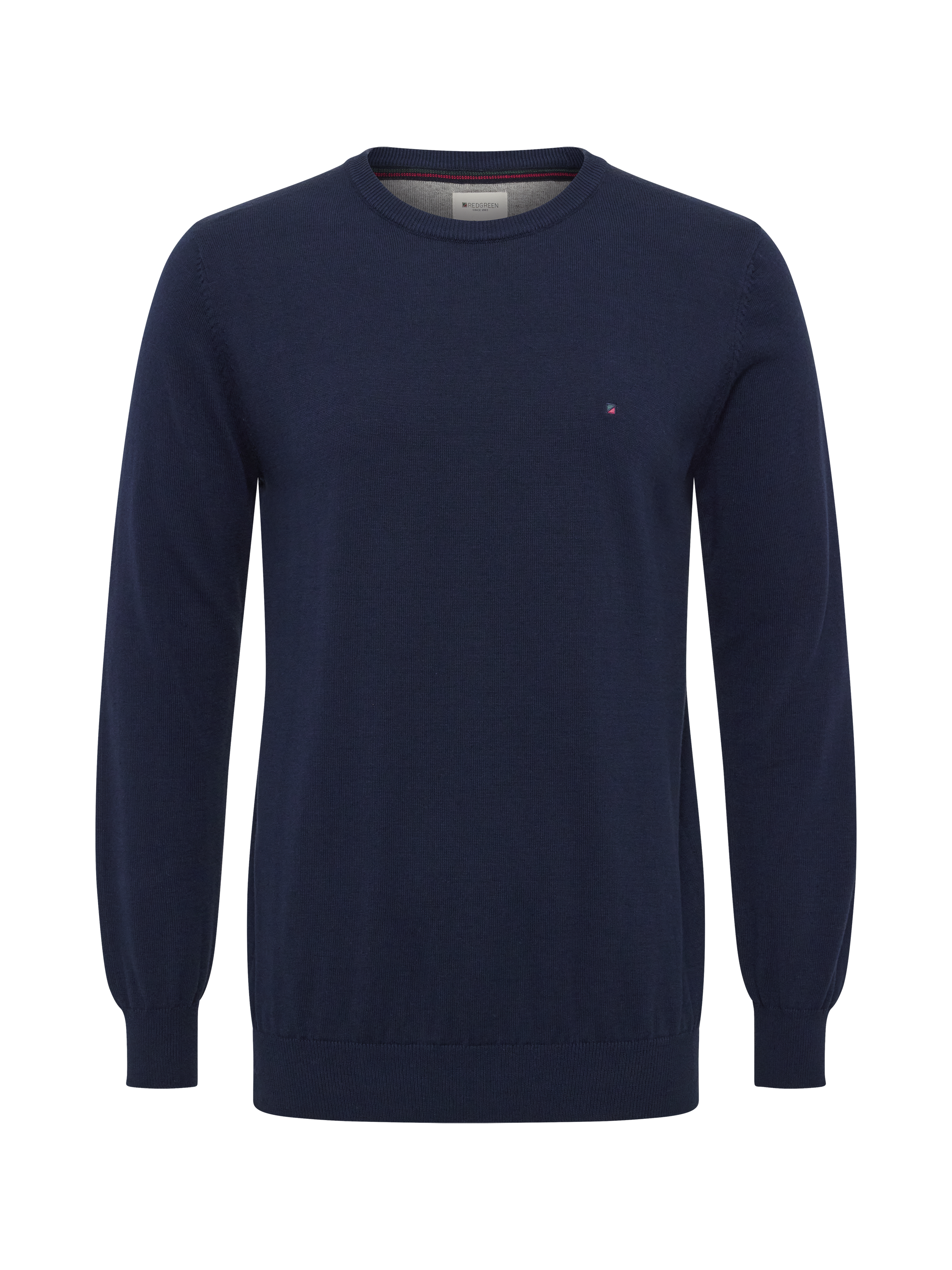Denne klassiske striktrøje i 100% bomuld kombinerer komfort og stil. Ribstrik ved ærmer og bund giver en behagelig pasform, mens det tidløse design gør den alsidig til både hverdag og pænere lejligheder. Perfekt til lag-på-lag under en jakke for ekstra varme.