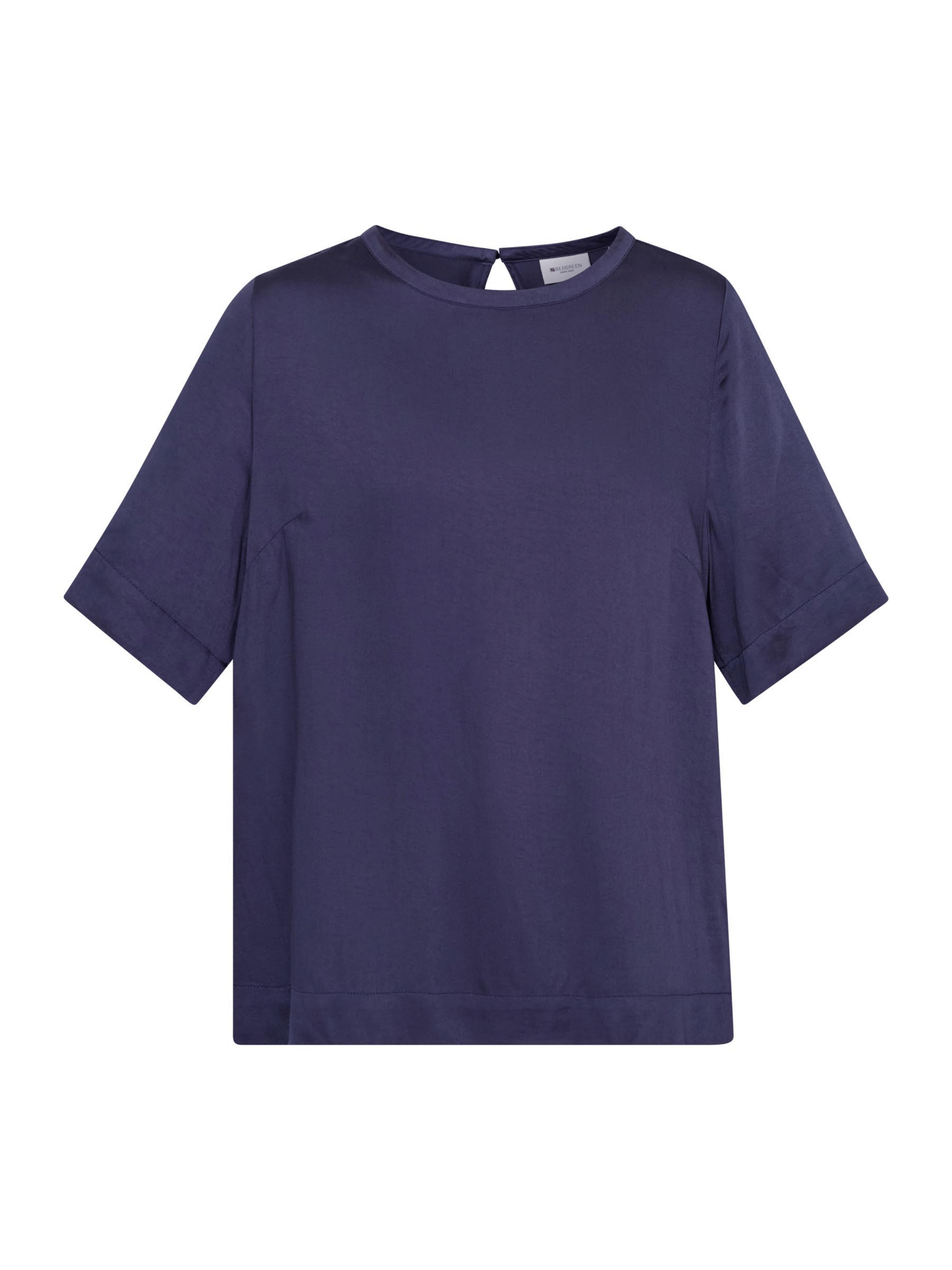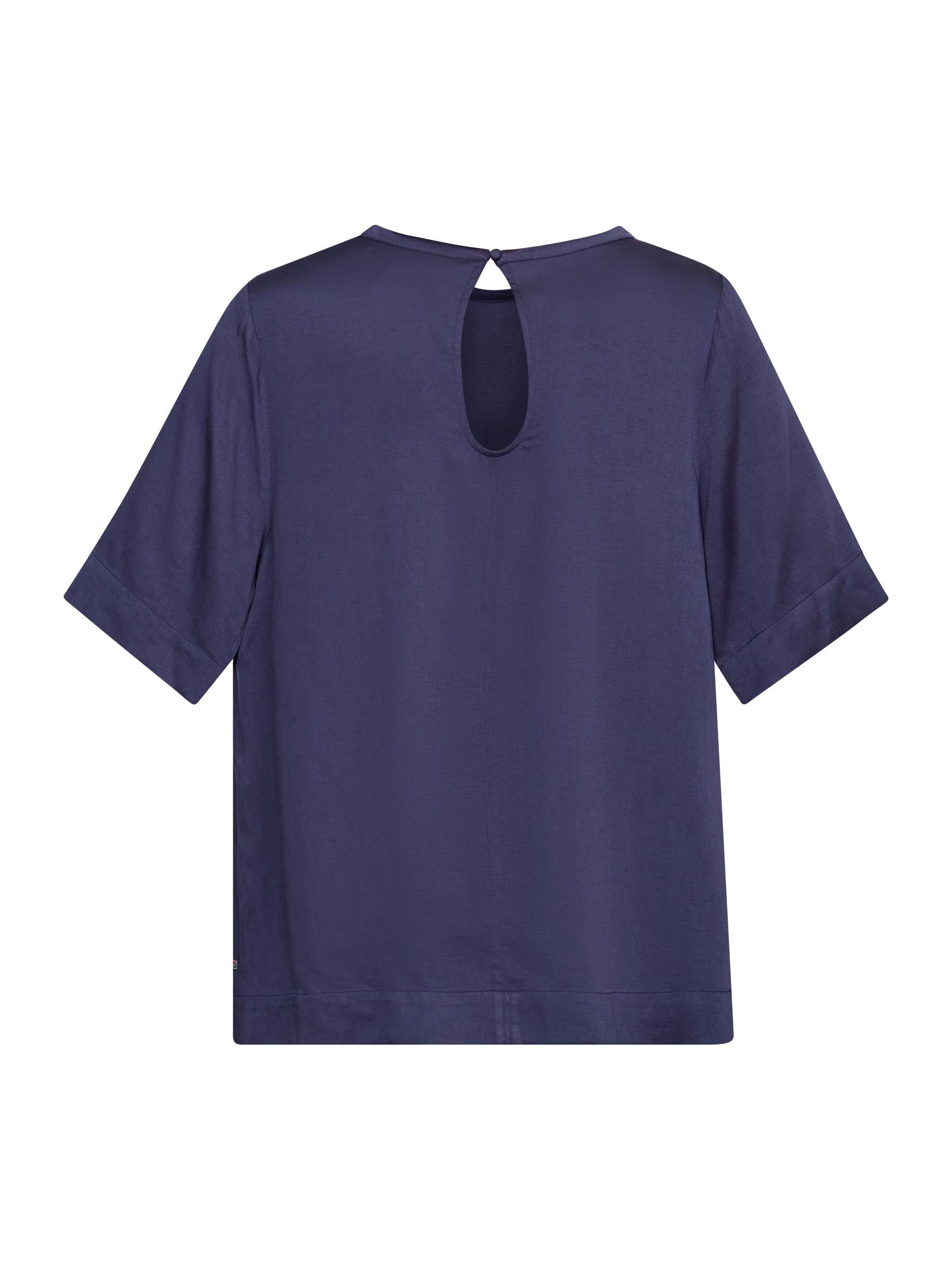 Let og feminin bluse i 100% viskose med et enkelt, elegant udtryk. Blusen har korte ærmer, rund halsudskæring og en dekorativ nøglehulsåbning med knaplukning i ryggen, der giver et let og luftigt look.
