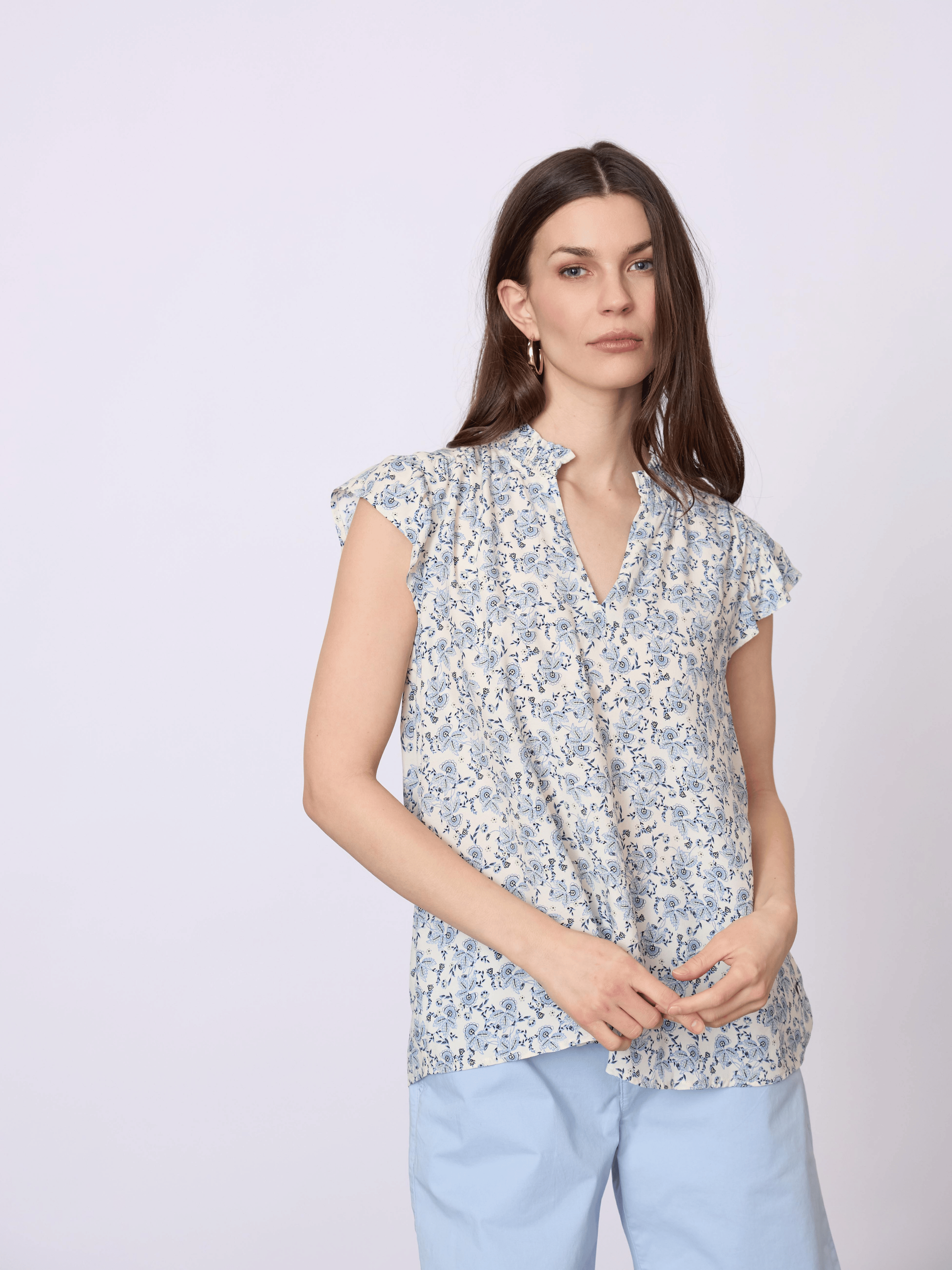 En let og feminin top i 100% viskose med en blød, ribbet struktur og et enkelt, tidløst udtryk. Toppen har en rund halsudskæring og en kropsnær pasform, der gør den ideel både alene og som lag-på-lag.