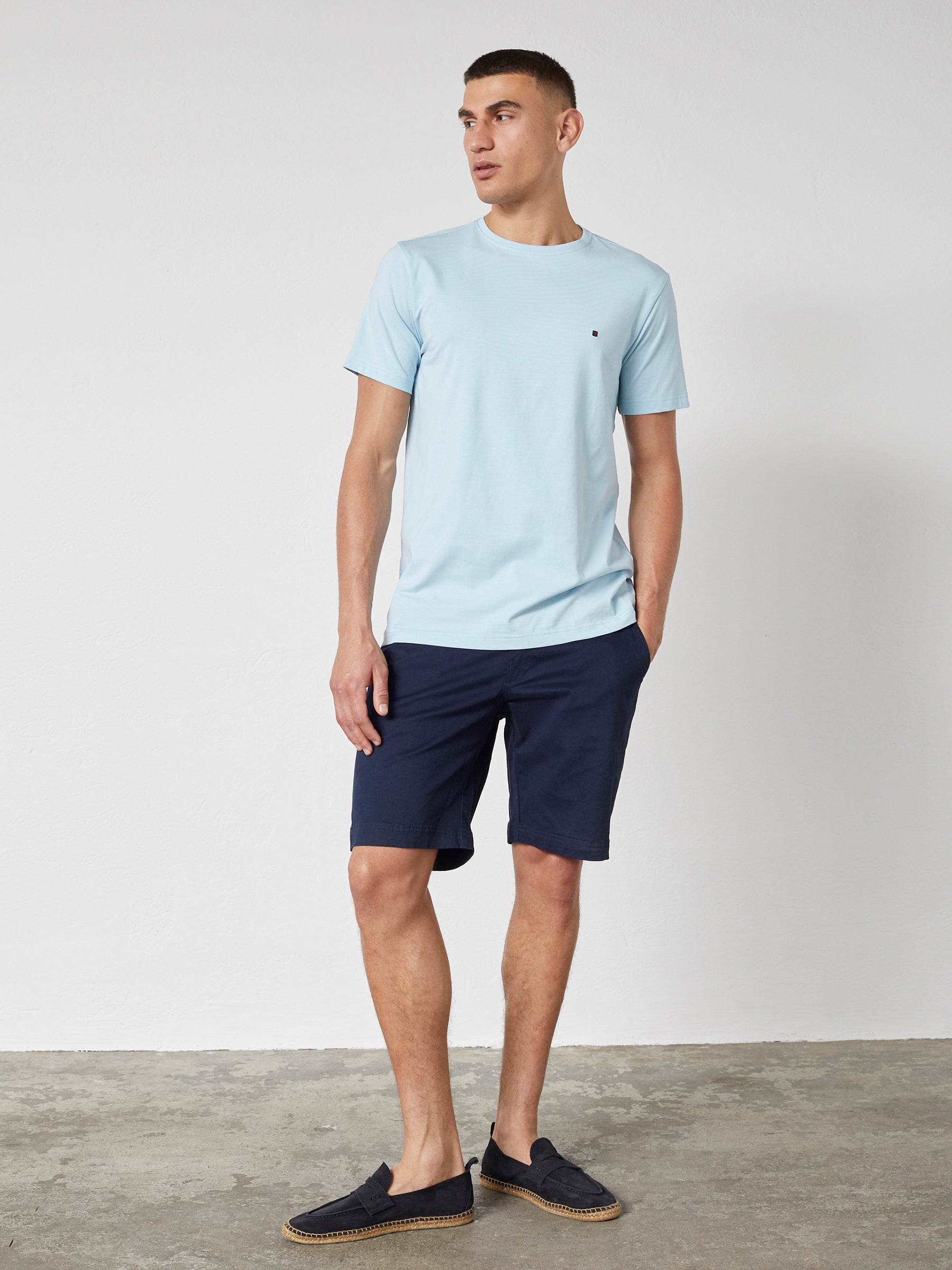 Klassisk herre-T-shirt i blød bomuldsblanding med let stræk og et rent, tidløst udtryk. Den behagelige kvalitet og fleksible pasform gør T-shirten velegnet til hverdagsbrug og afslappede looks.