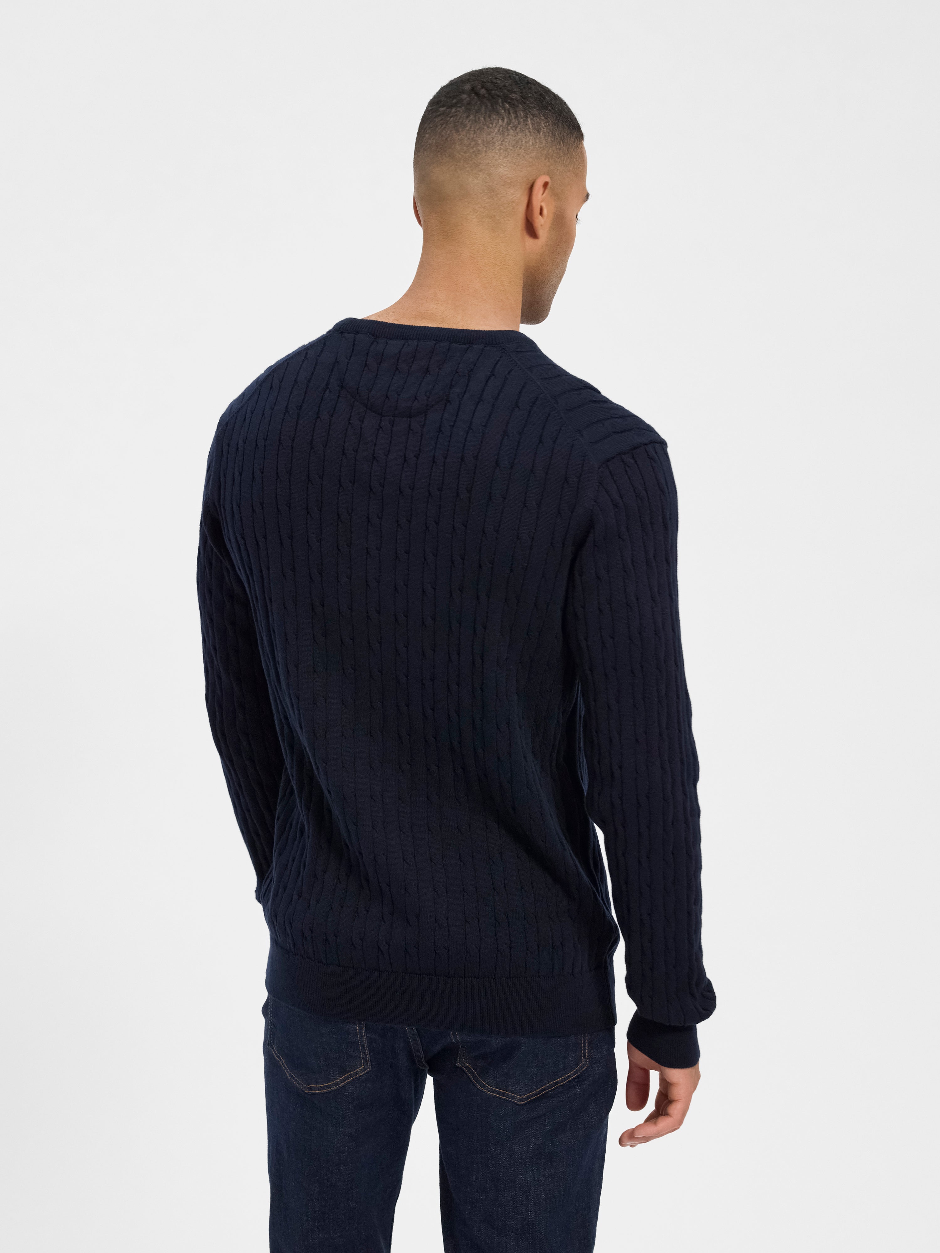 Strikken er fremstillet af 100% bomuld, som kombinerer funktion og stil med høj komfort og holdbarhed. Med sit minimalistiske og tidløse design passer den perfekt i enhver klassisk mandegarderobe – ideel til arbejde, weekender og familiesammenkomster.