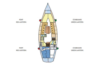 Skibets højre side er styrbord og illustreret med den grønne farve. Venstre side er bagbord og vist med den røde farve. Forestil dig selv som et skib.
