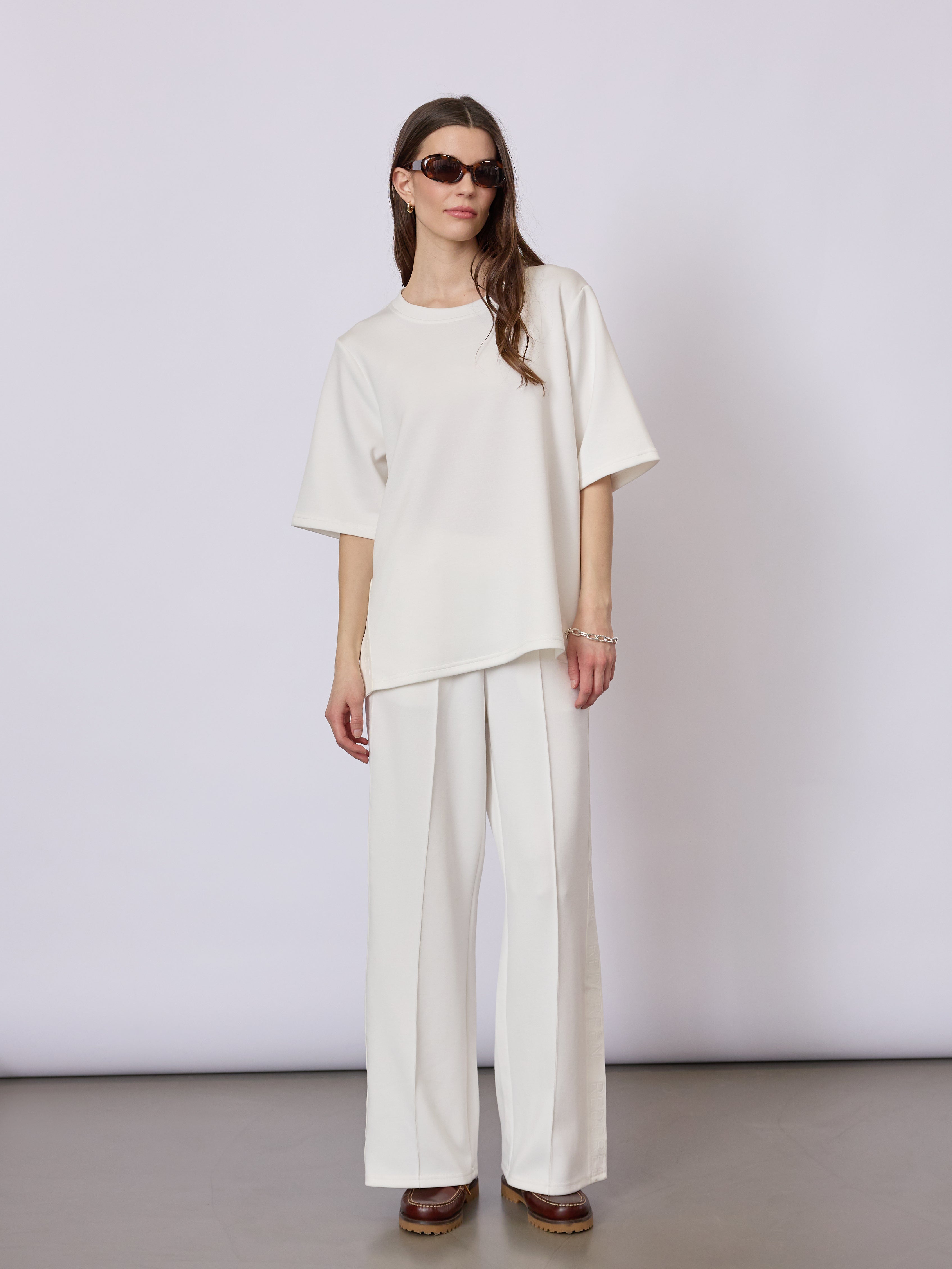 En enkel og elegant T-shirt i en blød, let struktureret kvalitet. Den løse pasform og rene linjer giver et tidløst udtryk til både hverdag og afslappede anledninger.