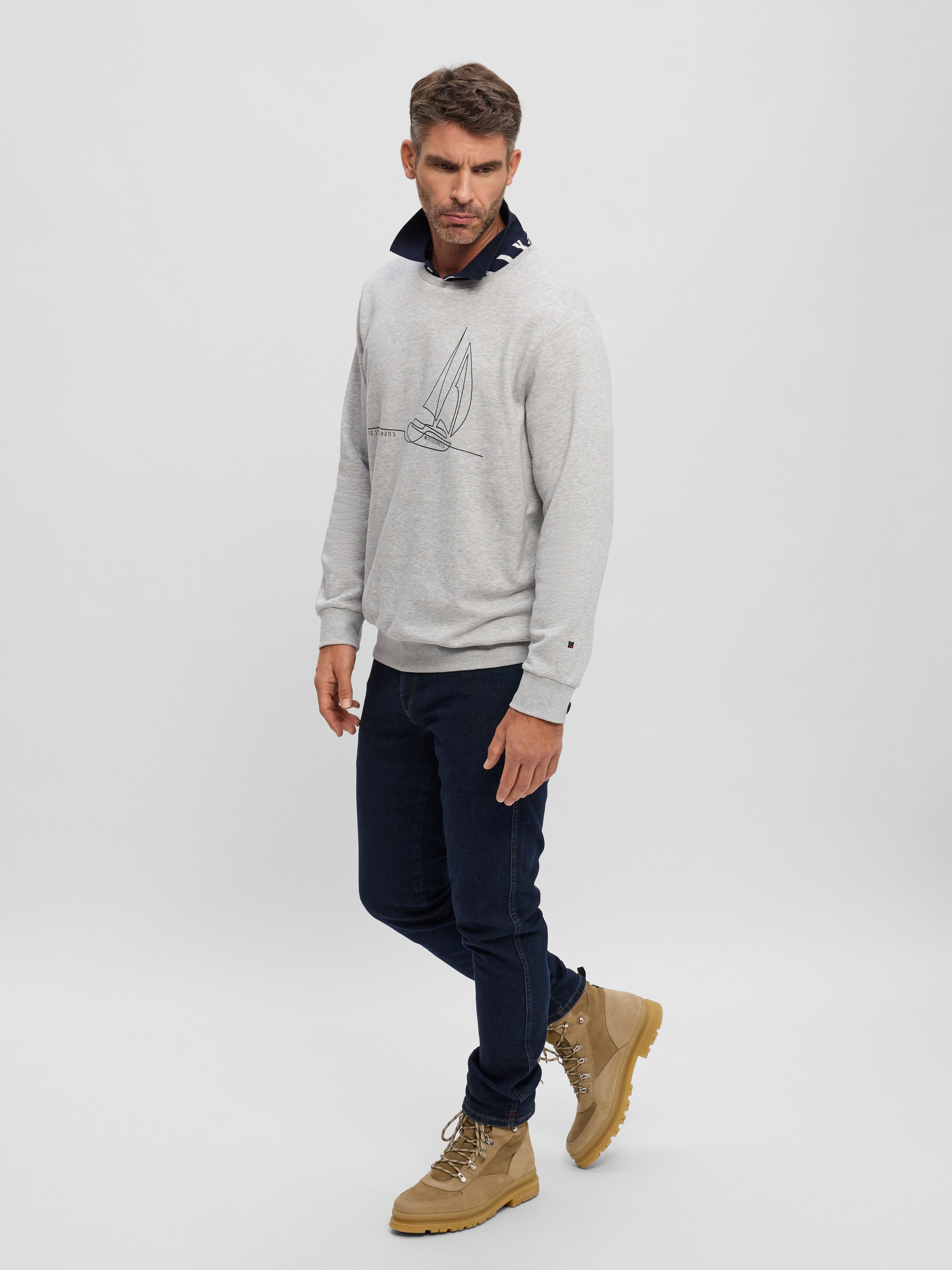 Oplev den uovertrufne komfort og tidløse stil med vores Frankie Sweatshirt. Den er designet med sans for detaljer og har en nordisk flair, der ubesværet supplerer enhver garderobe. Frankie er fremstillet af førsteklasses materialer og har en perfekt pasform, der sikrer, at du har det behageligt hele dagen. Det underspillede design lover alsidighed og lang levetid i både appel og brug, hvilket gør det til et ideelt valg for den kræsne herre, der sætter kvalitet over prangende trends.