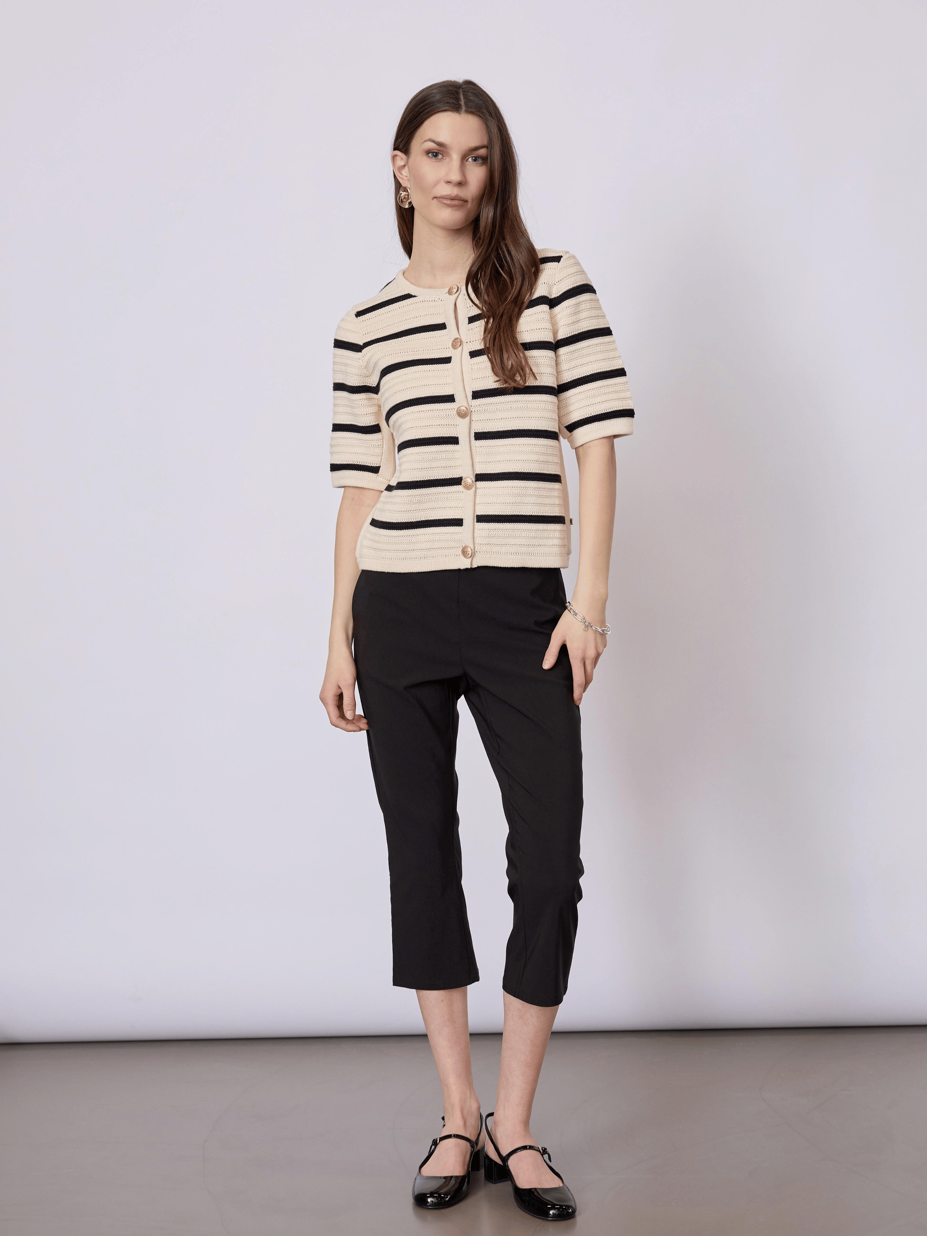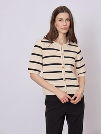 Strikket top i 100% økologisk bomuld med et klassisk stribet udtryk. Et let og tidløst design, der kombinerer nordisk enkelhed med behagelig komfort til hverdagen.