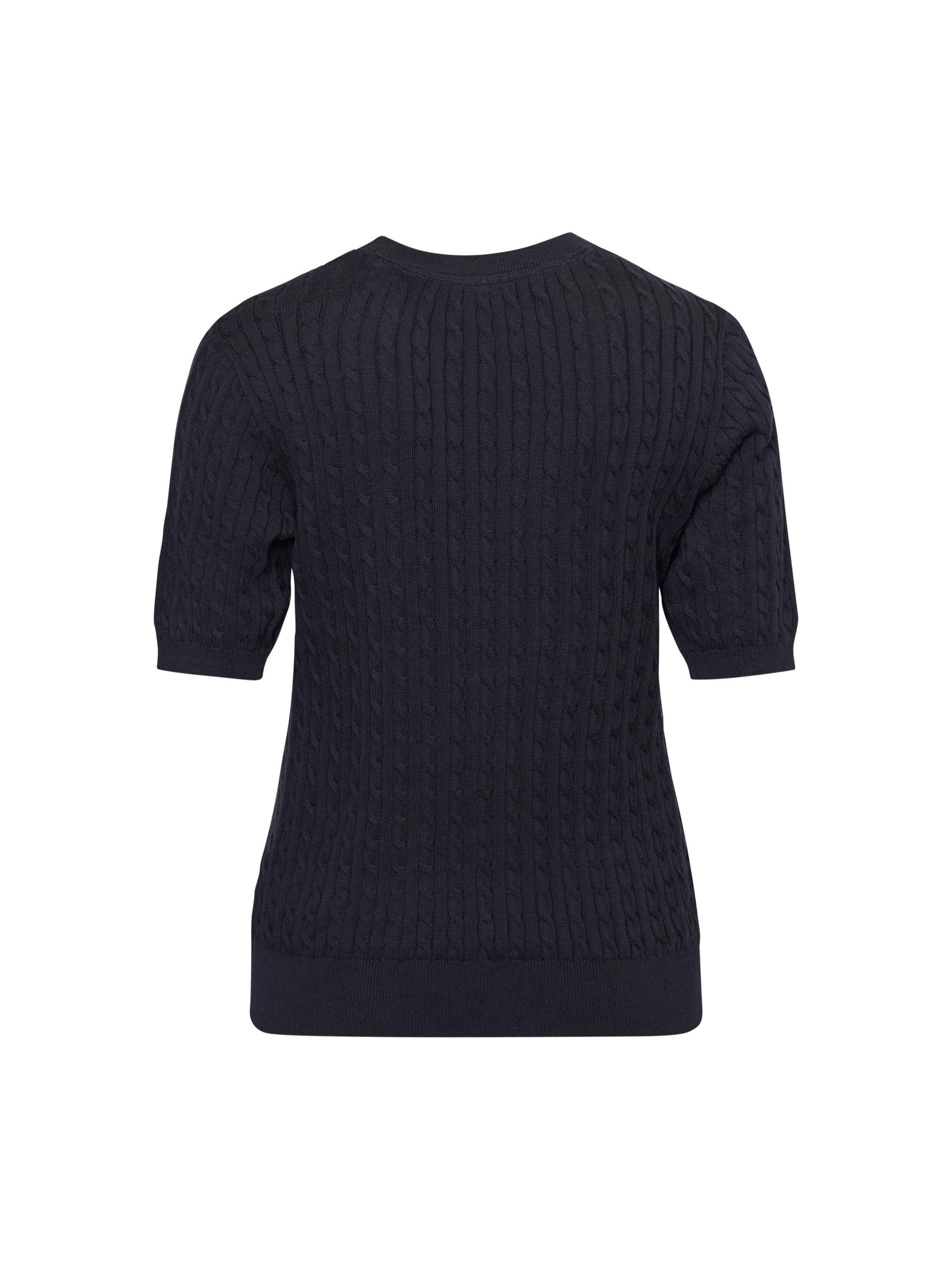 Let og feminin strikbluse i 100% økologisk bomuld med et fint, struktureret mønster og et klassisk udtryk. Blusen har korte ærmer, polokrave og knaplukning foran, som giver et elegant og tidløst look.