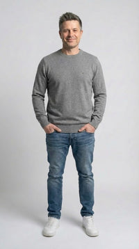 Klassisk herrestrik i 100% bomuld med et rent og tidløst udtryk. En blød og behagelig strik, der egner sig godt til hverdagsbrug og fungerer perfekt som lag-på-lag i skiftende sæsoner.