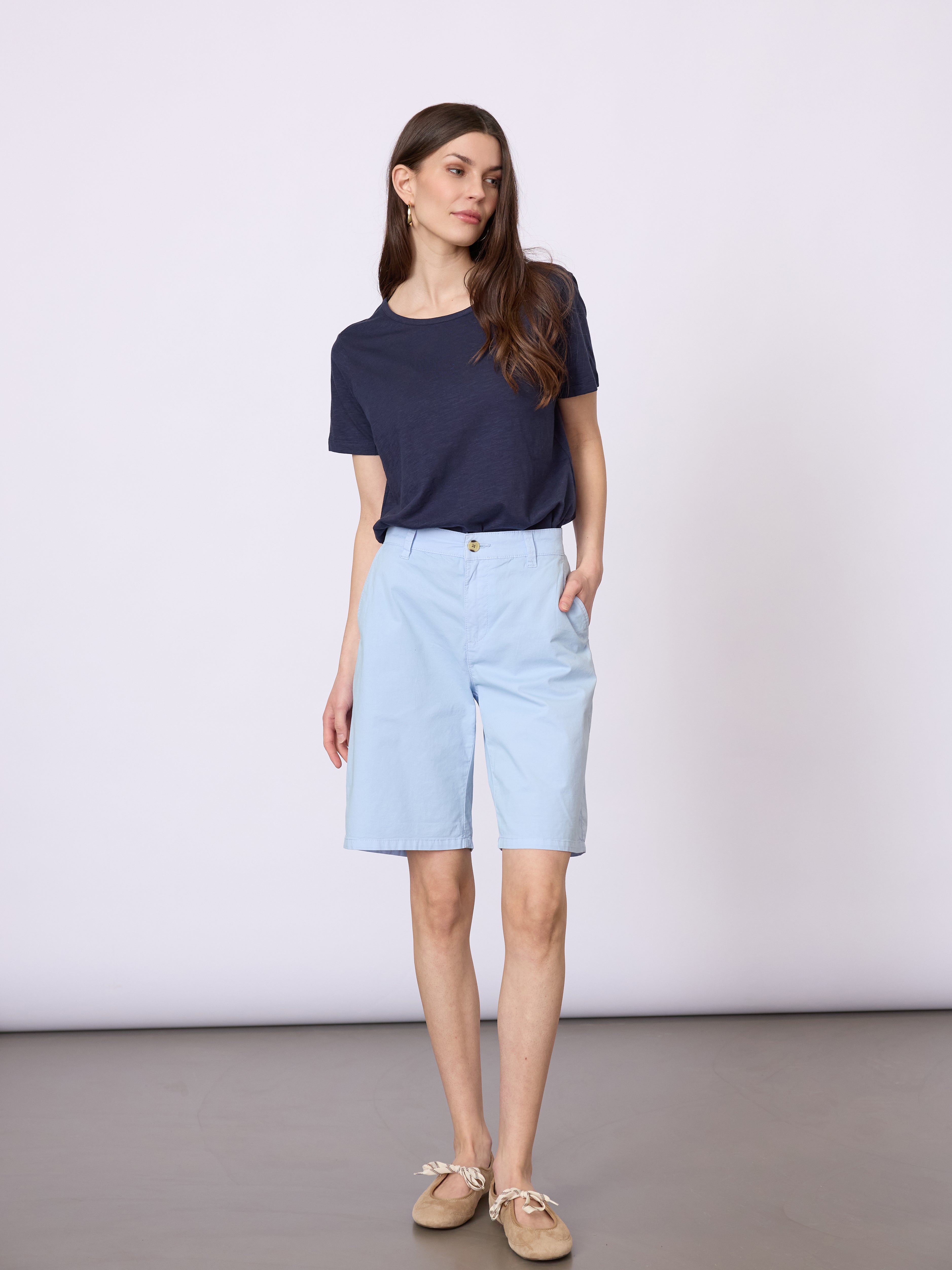 Klassiske shorts i en behagelig bomuldsblanding med let stretch. Et tidløst design med rene linjer, der giver komfort og bevægelsesfrihed til varme dage.