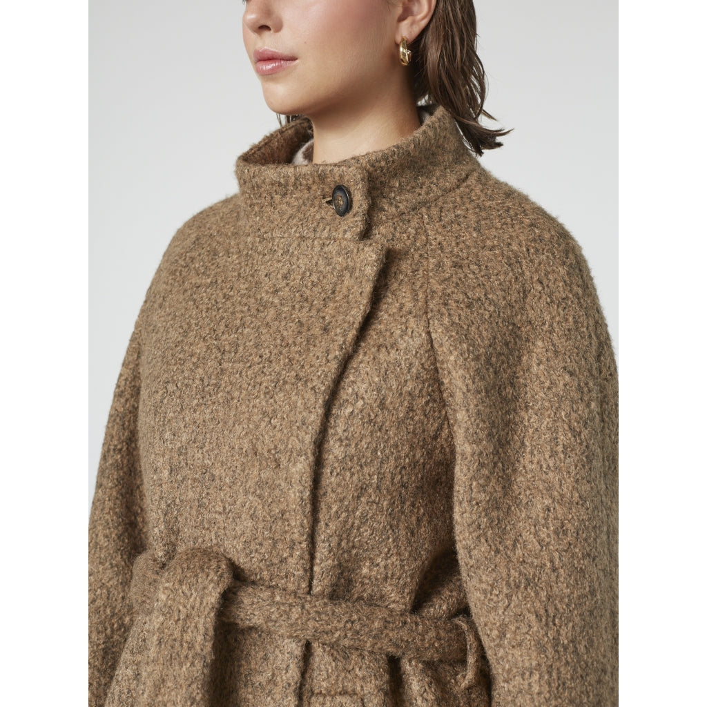 • Sora frakken har en afslappet silhuet med klassiske detaljer. Lavet i en kraftig, struktureret polyesterkvalitet, der giver varme og et tidløst udtryk. En alsidig frakke til både hverdagsbrug og pænere anledninger.